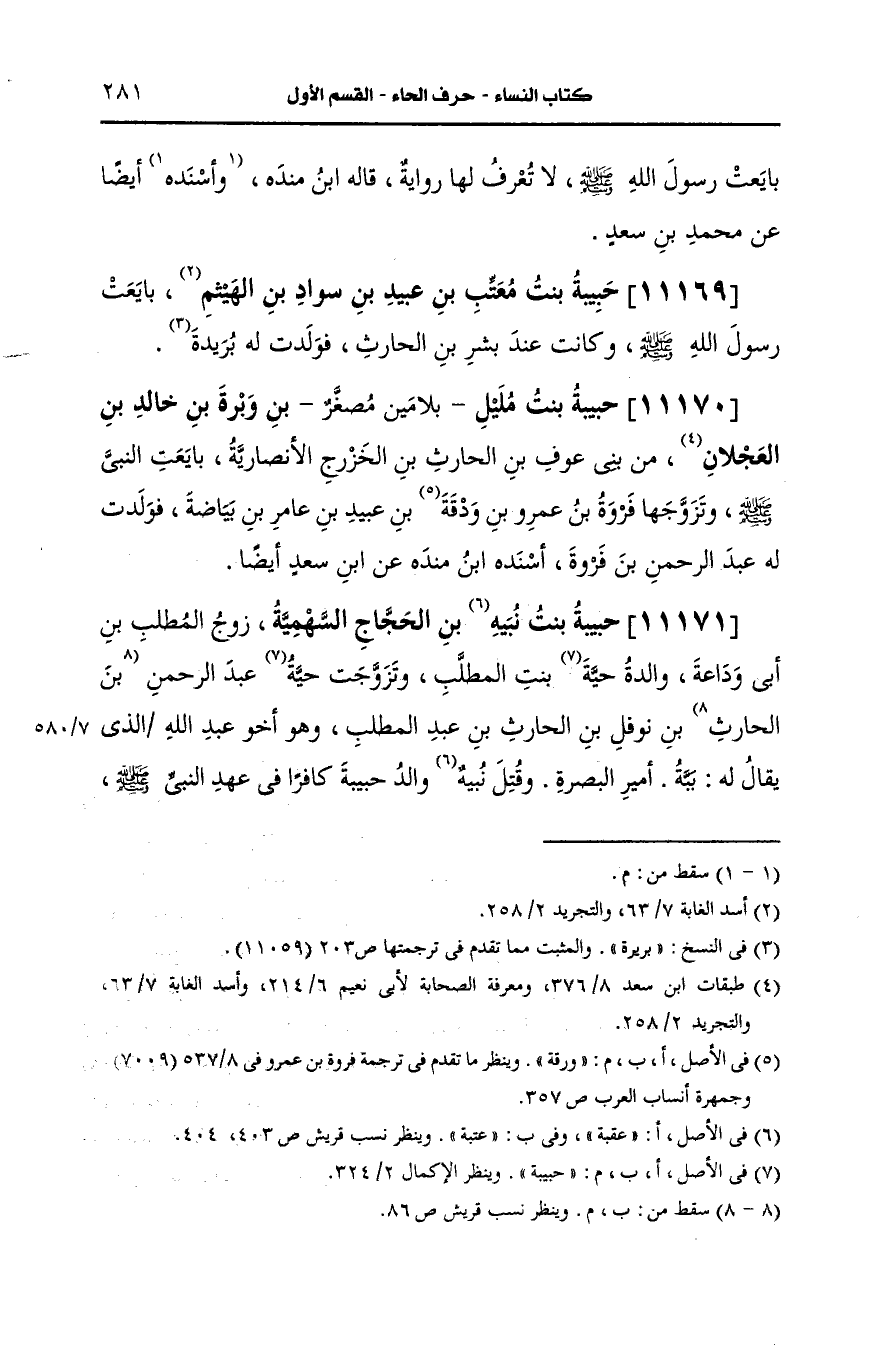 11171- حبيبة بنت نبيه بن الحجاج السهمية.