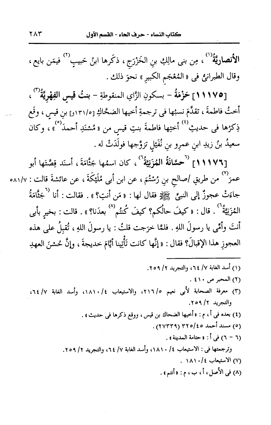 11175- حزمة بسكون الزاي المنقوطة بنت قيس الفهرية أخت فاطمة.