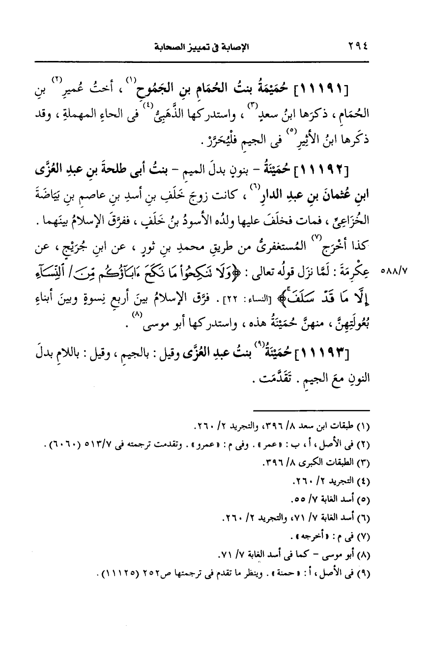 11192- حمينة بنون بدل الميم بنت أبي طلحة بن عبد العزى بن عثمان بن عبد الدار.