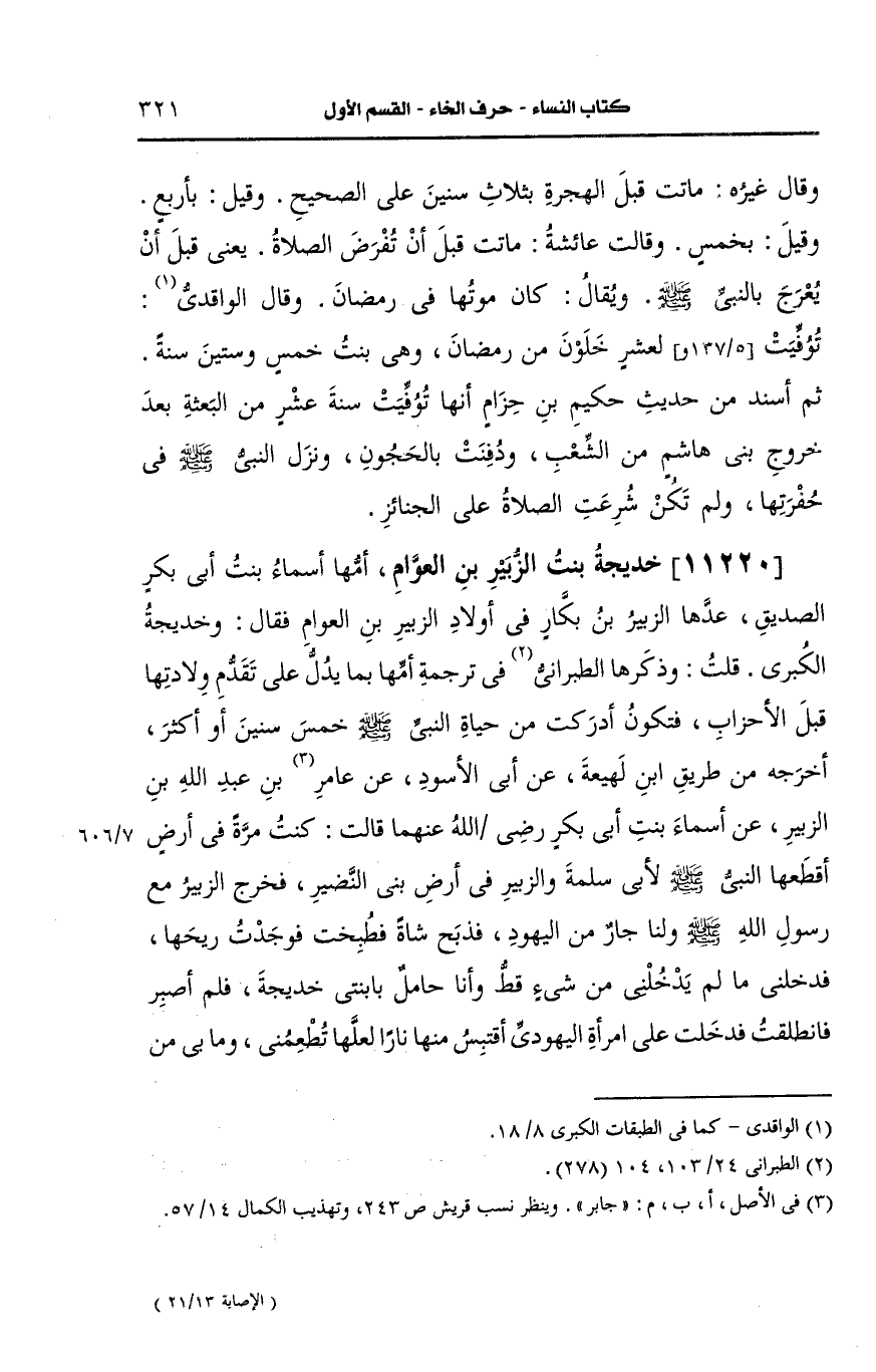 11220- خديجة بنت الزبير بن العوام أمها أسماء بنت أبي بكر الصديق.