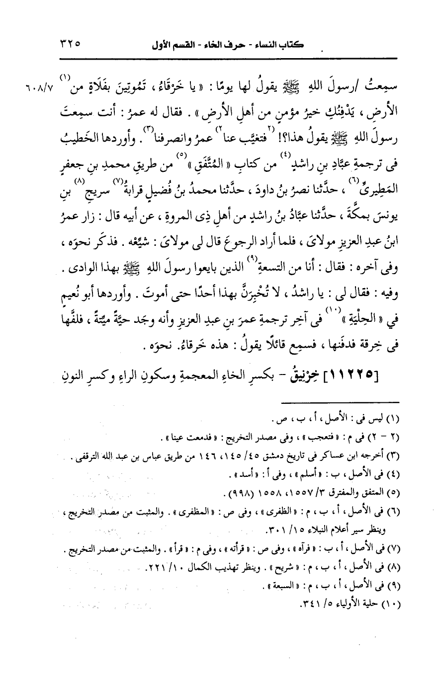 11225- خرنيق بكسر الخاء المعجمة وسكون الراء وكسر النون بعدها مثناة تحتانية ثم قاف بنت الحصين الخُزاعيّة أخت عمران.