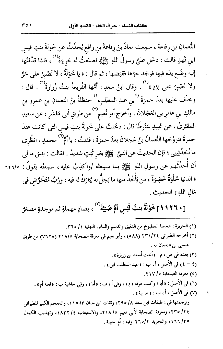 11260- خولة بنت قيس أم صبية بصاد مهملة ثم موحدة مصغرة مع التثقيل.