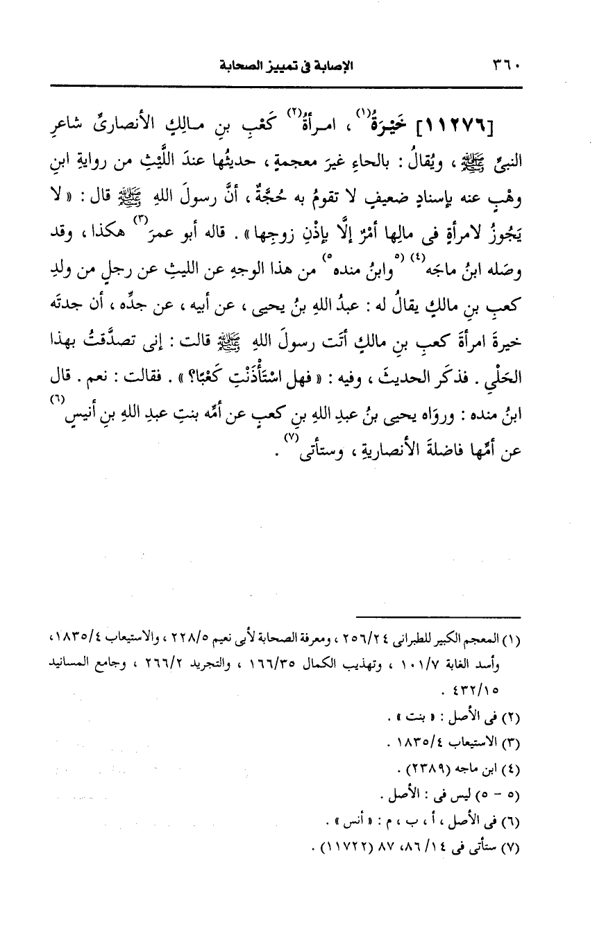 11276- خيرة امرأة كعب بن مالك، الأَنصارِيّ شاعر النَّبيّ صَلى الله عَلَيه وسَلم.