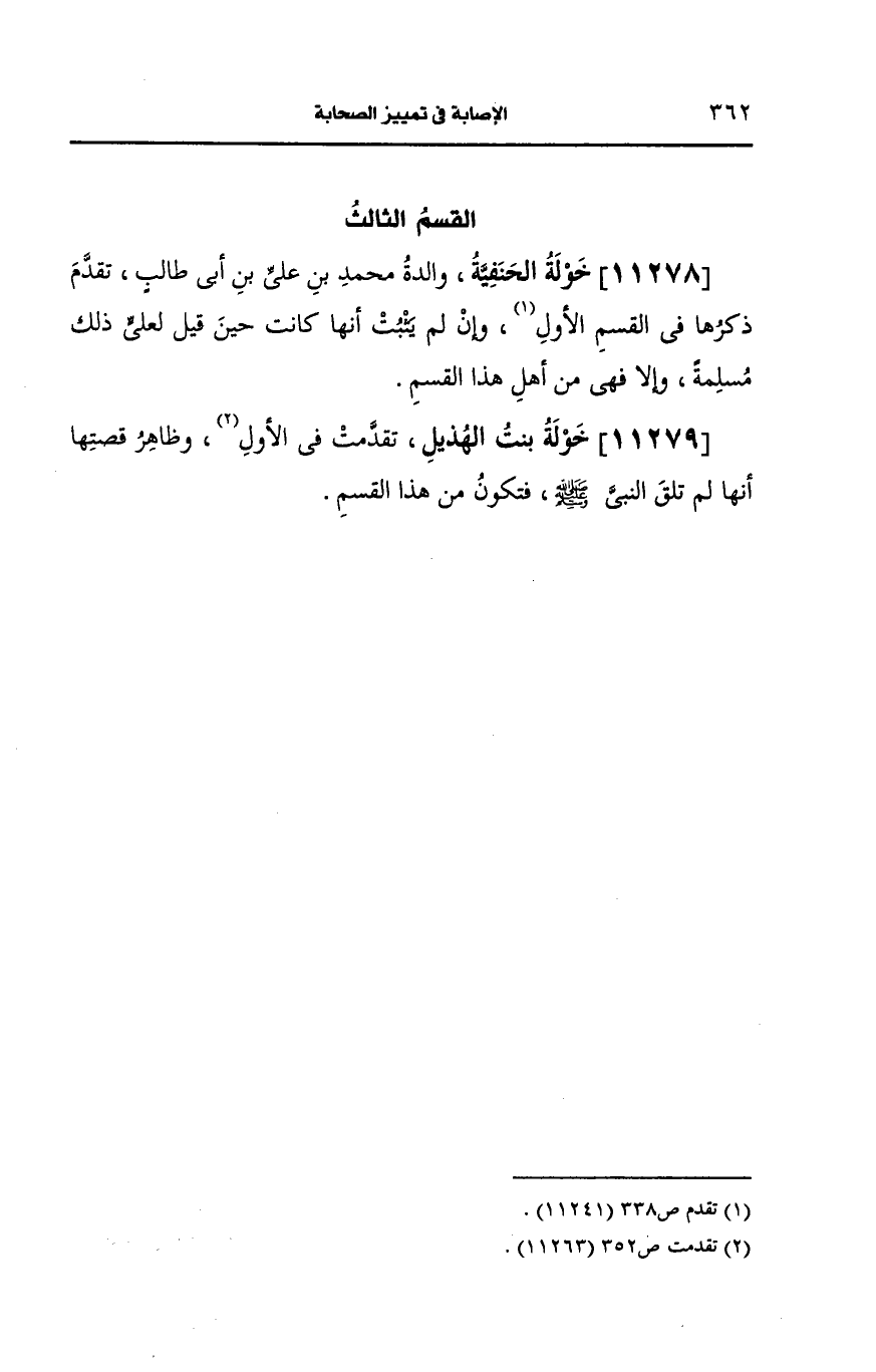 تقدم ذكرها في القسم الأول وإن لم يثبت أنها كانت حين قيل لعلي ذلك مسلمة وإلا فهي من أهل هذا القسم.