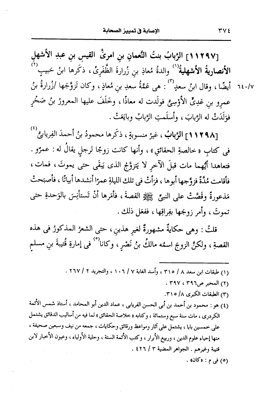 11297- الرباب بنت النعمان بن امرئ القيس بن عبد الأشهل، الأَنصارِيّة الأشهلية.