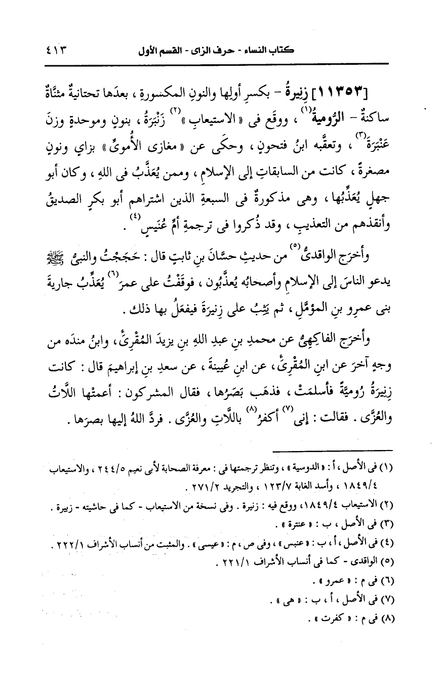 11353- زنيرة بكسر أولها وتشديد النون المكسورة بعدها تحتانية مثناة ساكنة الرومية.