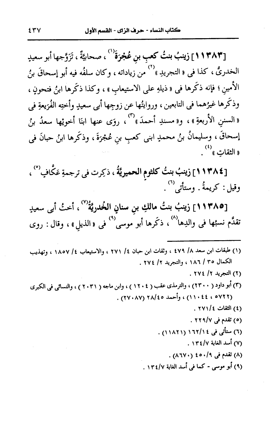 11385- زينب بنت مالك بن سنان الخدرية أخت أبي سعيد.