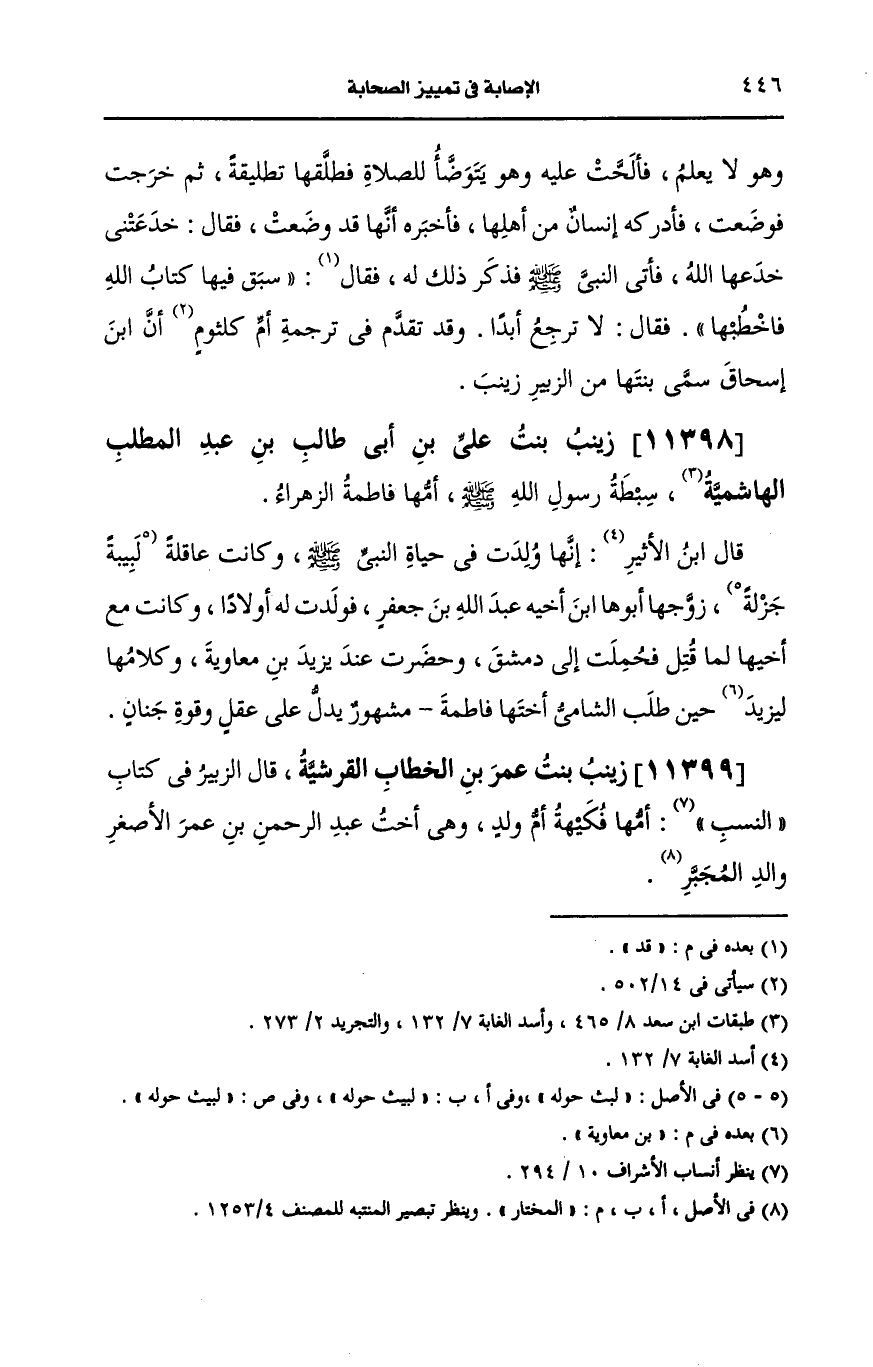 11398- زينب بنت على بن أبي طالب بن عبد المطلب الهاشمية سبطة رسول الله صَلى الله عَلَيه وسَلم.