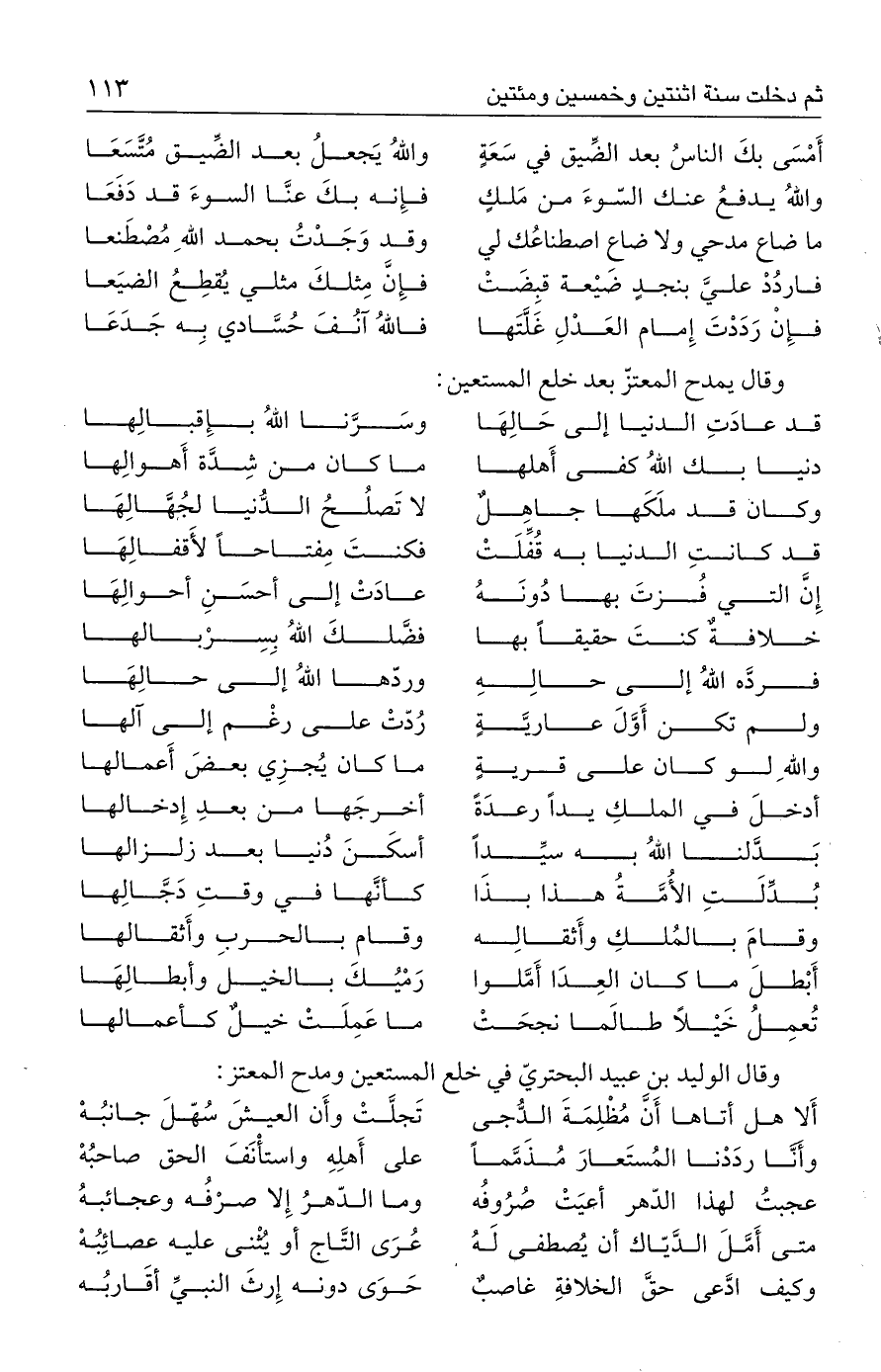 وقال الوليد بن عبيد البحتريّ في خلع المستعين ومدح المعتز: