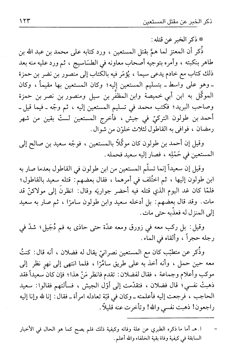 = ا. هـ أما ما ذكره الطبري عن علة وفاته وكيفية ذلك فلم يصح كما هو الحال في الأخبار السابقة في كيفية وفاة بقية الخلفاء والله أعلم.