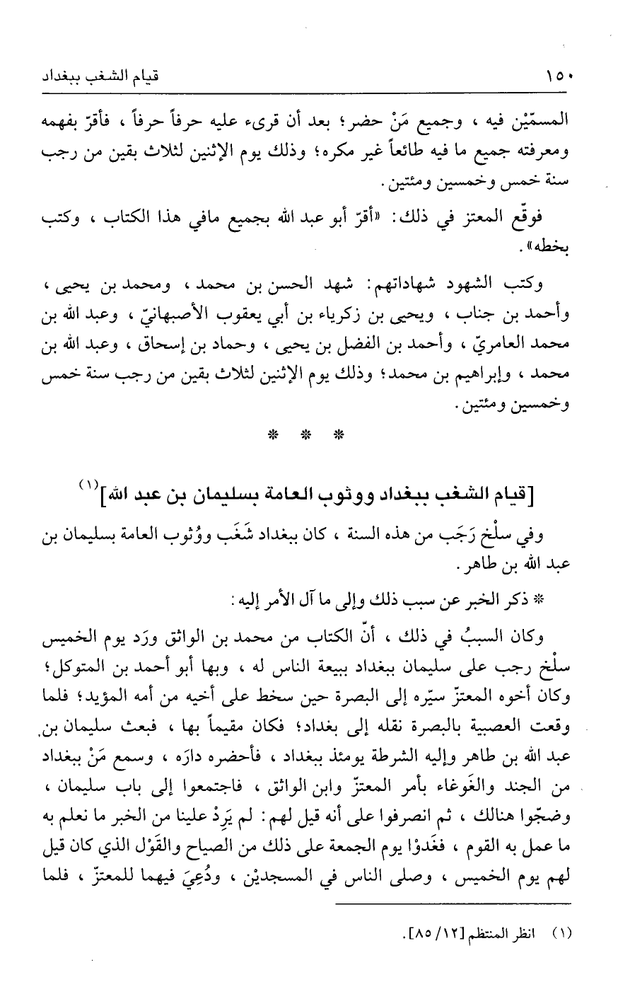 وفي سلْخ رَجَب من هذه السنة، كان ببغداد شَغَب ووُثوب العامة بسليمان بن عبد الله بن طاهر.