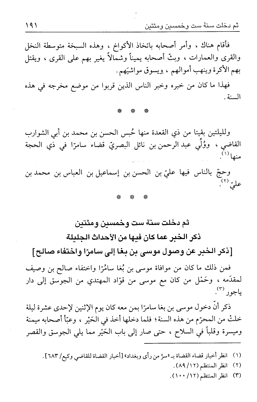 ثم دخلت سنة ست وخمسين ومئتين ذكر الخبر عما كان فيها من الأحداث الجليلة