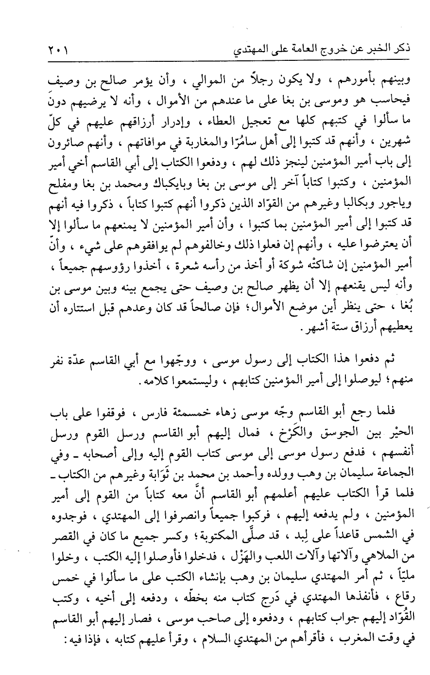 ثم دفعوا هذا الكتاب إلى رسول موسى، ووجّهوا مع أبي القاسم عدّة نفر منهم؛ ليوصلوا إلى أمير المؤمنين كتابهم، وليستمعوا كلامه