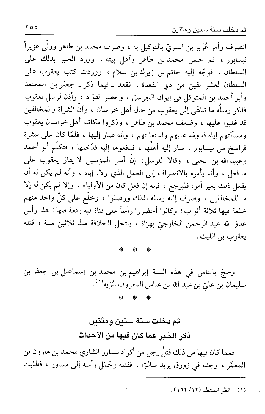 ثم دخلت سنة ستين ومئتين ذكر الخبر عما كان فيها من الأحداث