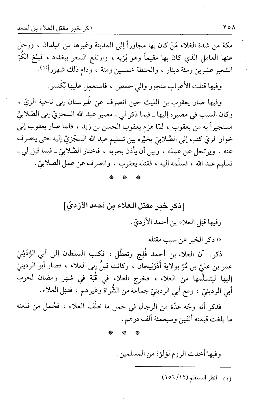 وفيها قتِل العلاء بن أحمد الأزديّ.