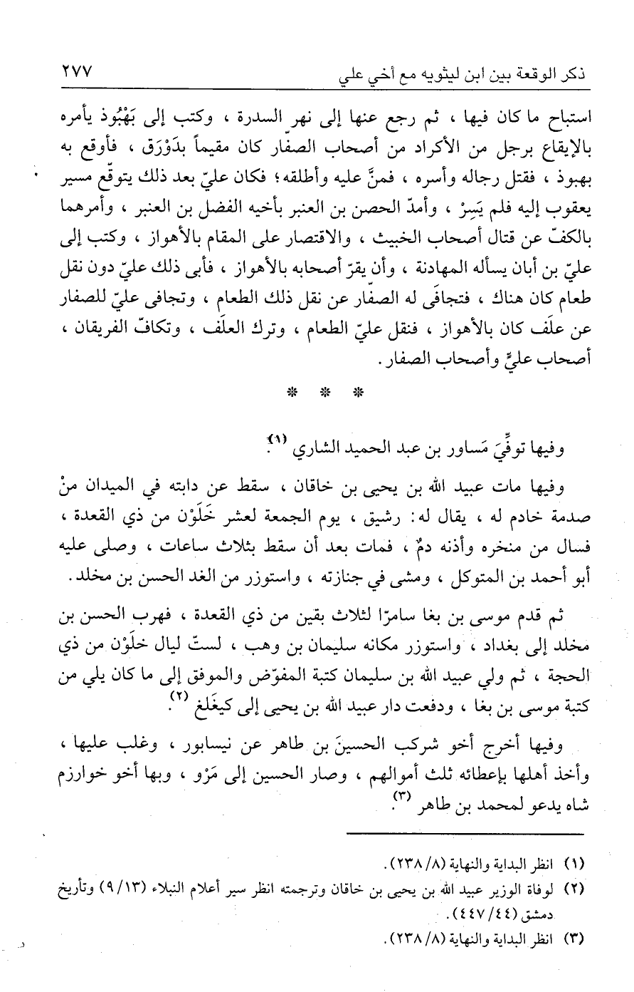 (٢) لوفاة الوزير عبيد الله بن يحيى بن خاقان وترجمته انظر سير أعلام النبلاء (١٣/ ٩) وتأريخ دمشق (٤٤/ ٤٤٧).