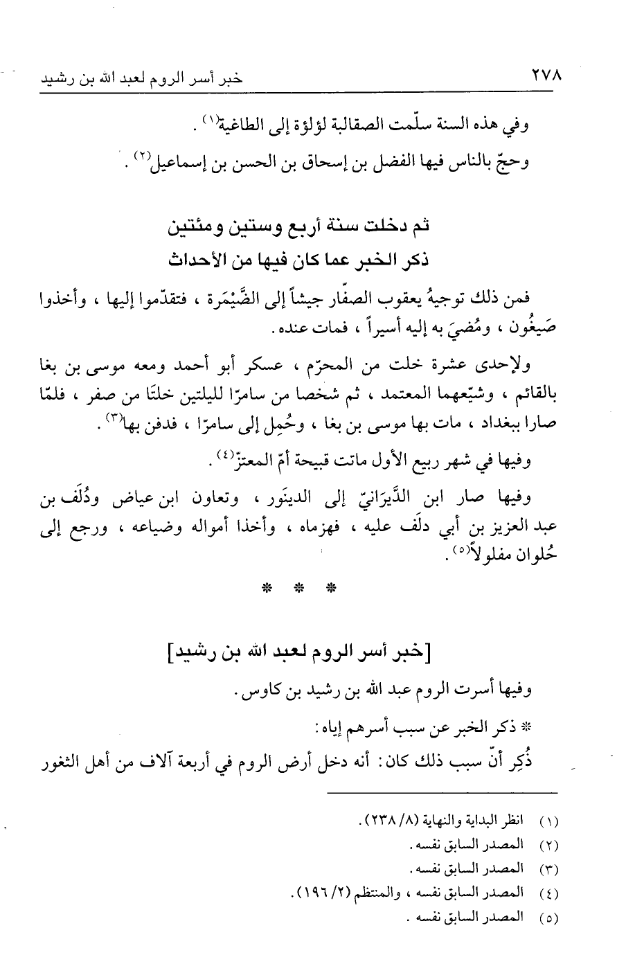 وفيها أسرت الروم عبد الله بن رشيد بن كاوس.