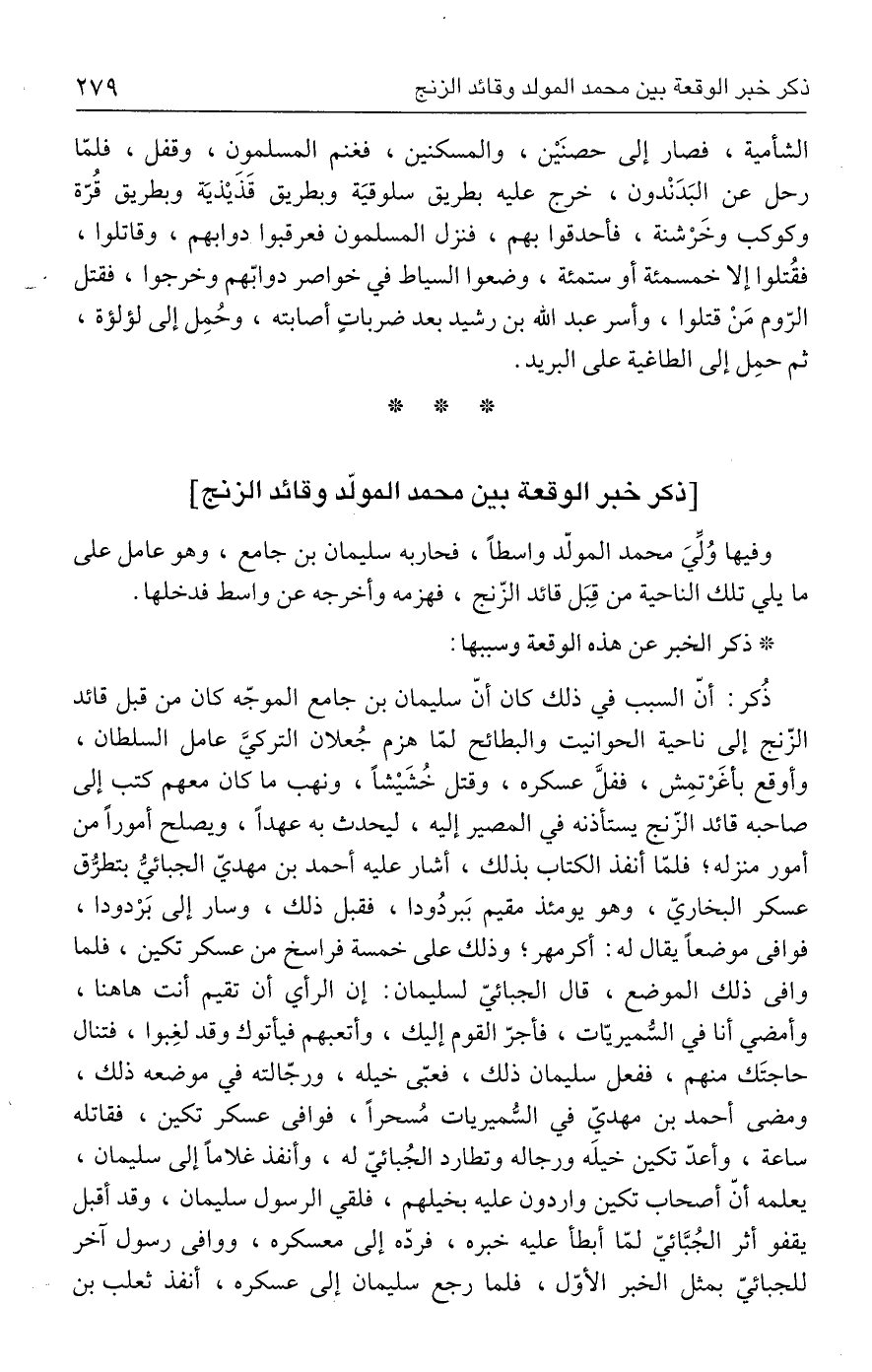 [ذكر خبر الوقعة بين محمد المولّد وقائد الزنج]