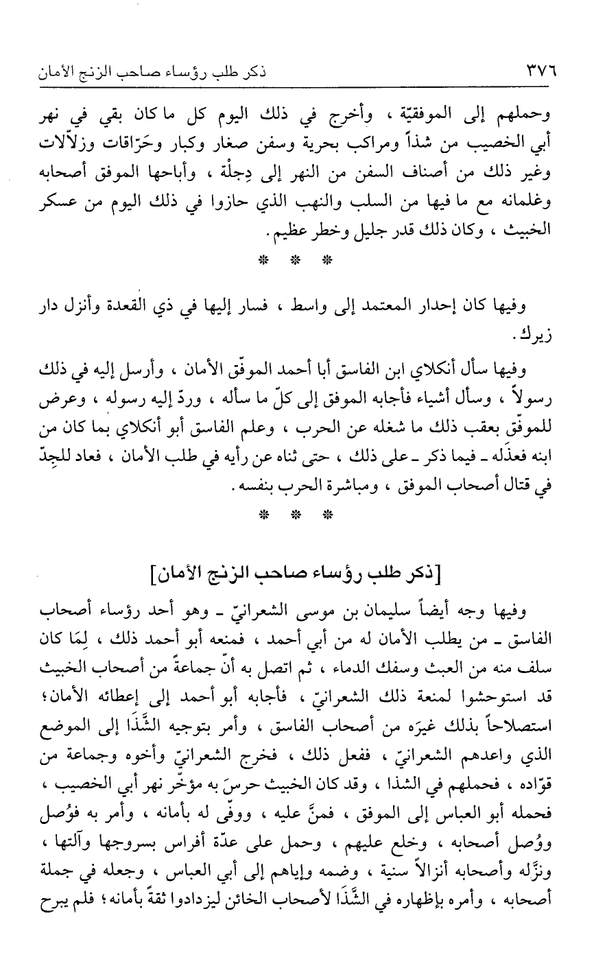[ذكر طلب رؤساء صاحب الزنج الأمان]