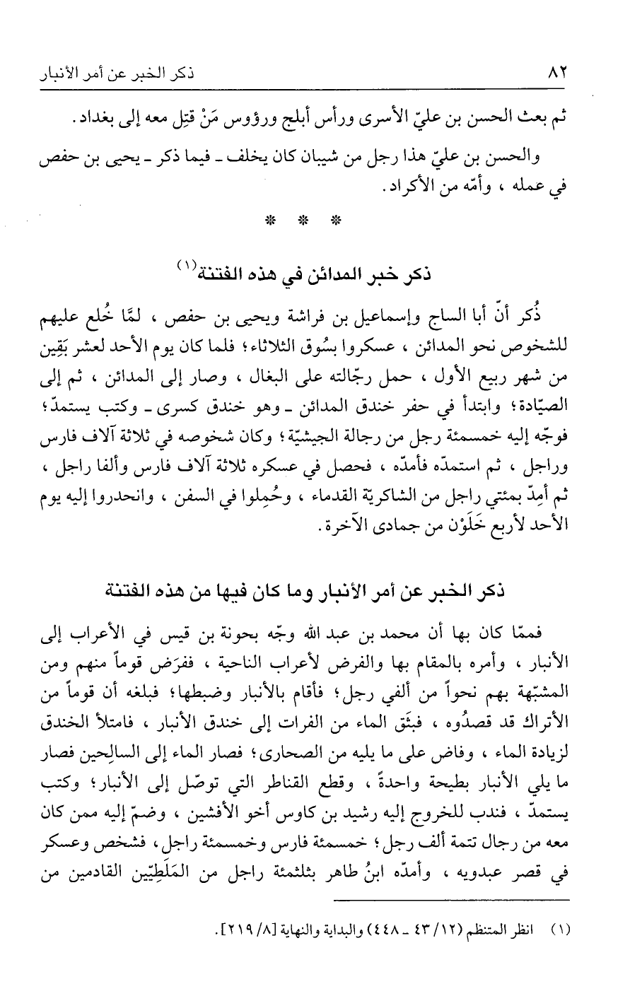 ذكر الخبر عن أمر الأنبار وما كان فيها من هذه الفتنة