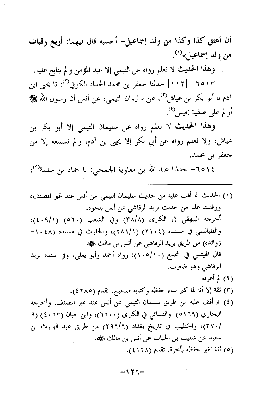 وَهَذَا الْحَدِيثُ لَا نَعْلَمُ رَوَاهُ عَن سُليمان التَّيْمِيِّ إلاَّ أَبُو بَكْرِ بْنُ عَيَّاشٍ، ولاَ نعلمُ رَوَاهُ عَن أَبِي بَكْر إلاَّ يَحْيَى بْنُ آدَمَ وَلَمْ نَسْمَعْهُ إلاَّ مِنْ جَعْفَرِ بْنِ محمد.