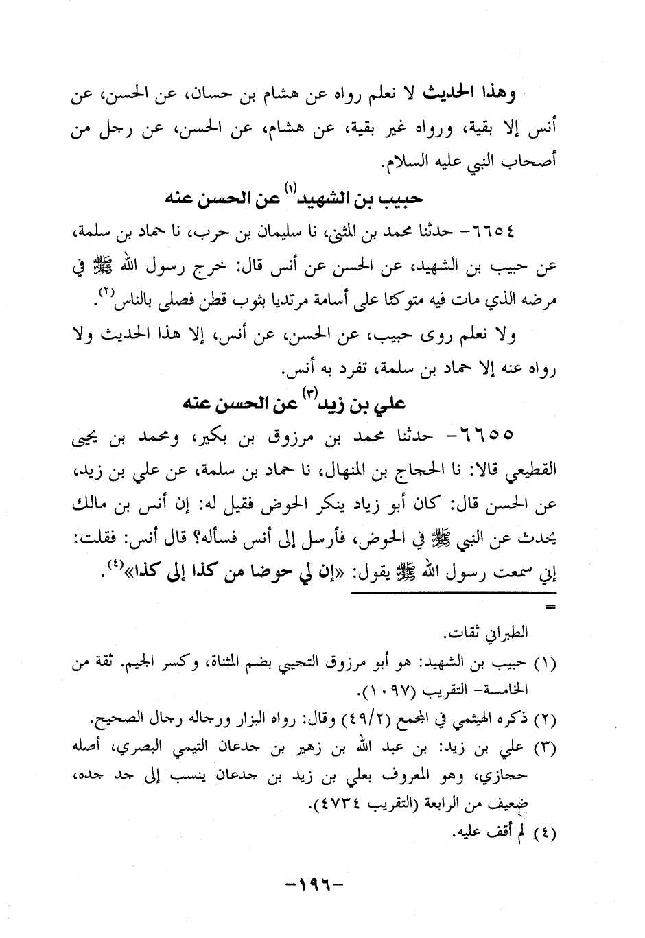 6655- حَدَّثنا مُحَمَّدُ بْنُ مَرْزُوقِ بْنِ بُكَيْرٍ، ومُحَمد بْنُ يحيي القطعي، قَالاَ: حَدَّثنَا الحجاج بن المنهال، حَدَّثنا حَمَّادُ بْنُ سَلَمَةَ , عَنْ عَلِيِّ بْنِ زَيْدٍ , عَنِ الْحَسَنِ , قَالَ: كَانَ أَبُو زِيَادٍ يُنْكِرُ الْحَوْضَ فَقِيلَ لَهُ: إِنَّ أَنَسَ بْنَ مَالِكٍ يُحَدِّثُ، عَن النَّبِيّ صَلَّى اللَّهُ عَلَيْهِ وَسَلَّمَ فِي الْحَوْضِ فَأَرْسَلَ إِلَى أَنَسٍ فَسَأَلَهُ قَالَ أَنَسٌ: فَقُلْتُ: إِنِّي سَمِعْتُ رَسُولَ اللَّهِ صَلَّى اللَّهُ عَلَيْهِ وَسَلَّمَ يَقُولُ: إِنَّ لِي حَوْضًا من كذا إلى كذا.