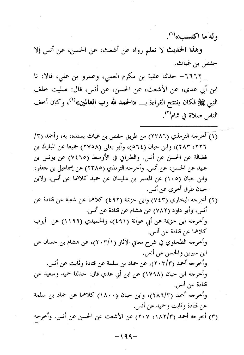 6662- حَدَّثنا عُقْبَةُ بْنُ مُكْرَمٍ الْعَمِّيُّ وَعَمْرُو بْنُ علي، قَالاَ: حَدَّثنَا ابْنُ أَبِي عَدِيّ , عَنِ الأَشْعَثِ , عَنِ الْحَسَنِ، عَن أَنَسٍ، قَالَ: صَلَّيْتُ خَلْفَ النَّبِيّ صَلَّى اللَّهُ عَلَيْهِ وَسَلَّمَ فَكَانَ يَفْتَتِحُ الْقِرَاءَةَ بـ {الحمد لله رب العالمين} ، وَكان أَخَفَّ النَّاسِ صَلاةً فِي تَمَامٍ.