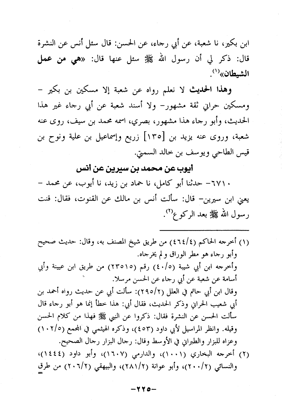6710- حَدَّثنا أَبُو كامل، حَدَّثنا حماد بن زيد، حَدَّثنا أَيُّوبُ عَنْ مُحَمَّدٍ، يَعْنِي ابْنَ سِيرِينَ، قَالَ: سَأَلْتُ أَنَسَ بْنَ مَالِكٍ، عَن الْقُنُوتِ فَقَالَ: قَنَتَ رَسُولُ اللَّهِ صَلَّى اللَّهُ عَلَيه وَسَلَّم بعد الركوع.