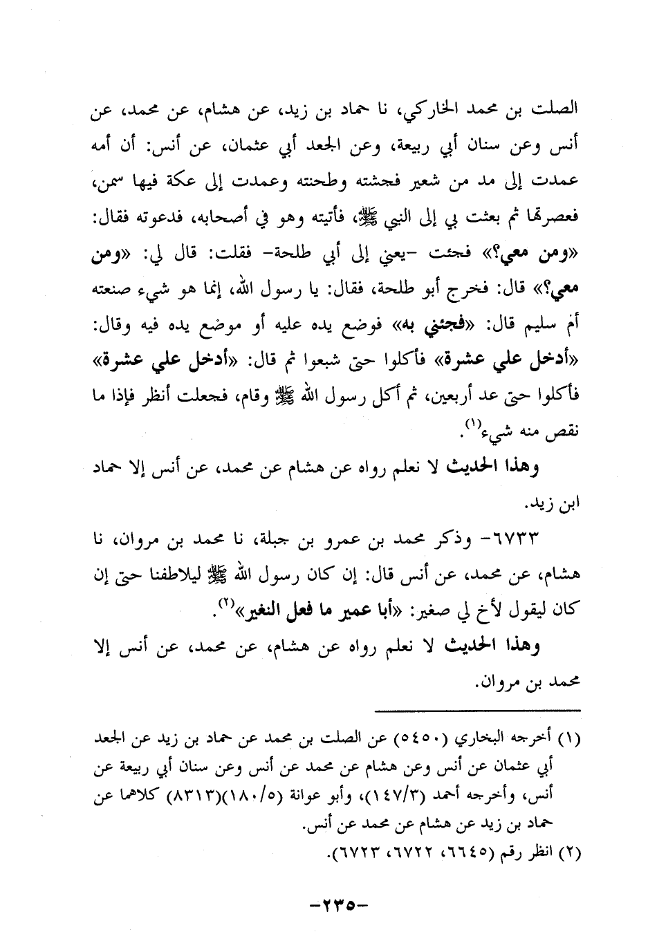 6733- وذكر محمد بن عَمْرو بن جبلة، حَدَّثنا محمد بن مروان، حَدَّثنا هِشَامٌ , عَنْ مُحَمَّدٍ، عَن أَنَسٍ، قَالَ: إِنْ كَانَ رَسُولُ اللَّهِ صَلَّى اللَّهُ عَلَيه وَسَلَّم لَيُلاطِفُنَا حَتَّى إِنْ كَانَ لَيَقُولُ لأَخٍ لِي صَغِيرٍ: أَبَا عُمَيْرٍ مَا فَعَلَ النُّغَيْرُ.