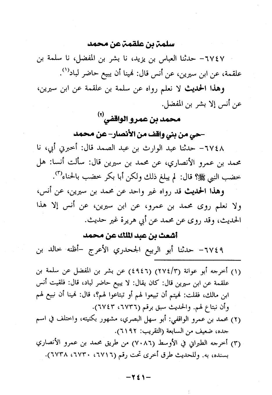 6747- حَدَّثنا الْعَبَّاسُ بن يزيد، حَدَّثنا بِشْر بن المُفَضَّل، حَدَّثنا سَلَمَةُ بْنُ عَلْقَمَةَ، عَن ابْنِ سِيرِينَ، عَن أَنَسٍ، قَالَ: نُهِينَا أَنْ يَبِيعَ حَاضِرٌ لِبَادٍ.