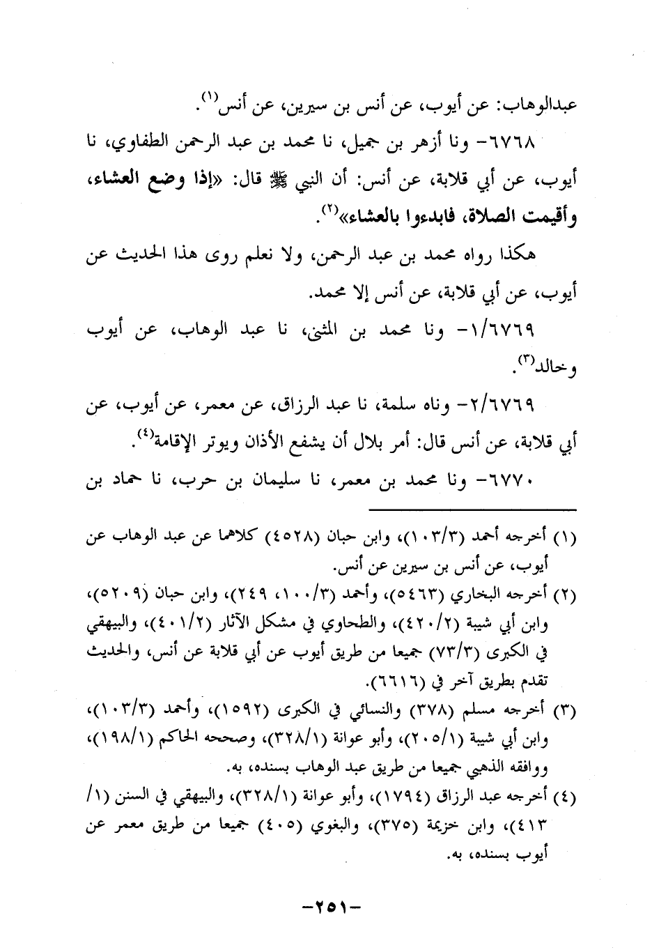 6769/2- وحَدَّثناه سلمة، حَدَّثنا عَبْدُ الرَّزَّاق , عَنْ مَعْمَر , عَنْ أَيُّوبَ، عَن أَبِي قِلاَبَةَ، عَن أَنَسٍ، قَالَ: أُمِرَ بِلالٌ أن يشفع الأذان ويوتر الإقامة.