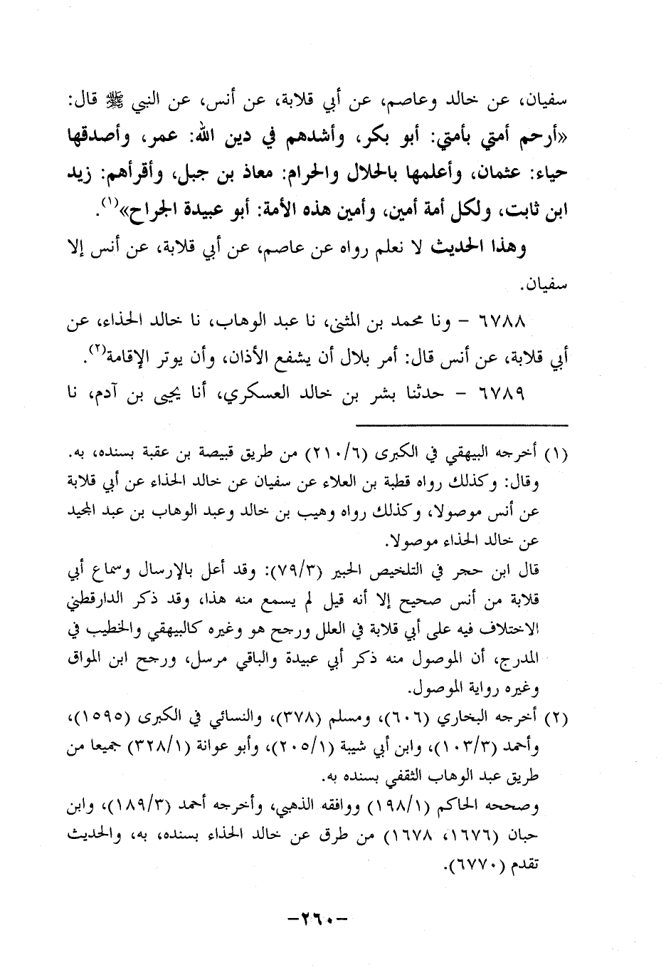 6790- حَدَّثنا به محمد بن مسكين، حَدَّثنا محمد بن يوسف الفريابي , عَنْ سُفيان، عَن خَالِدٍ، عَن أَبِي نُعَامَةَ، عَن أَنَس، بِنَحْوِهِ.