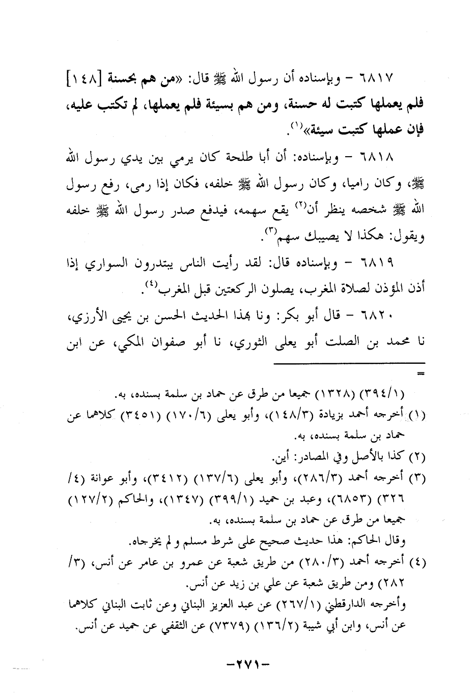 6817- وَبِإِسْنَادِهِ؛ أَنَّ رَسُولَ اللهِ صَلَّى اللَّهُ عَلَيه وَسَلَّم قَالَ: مَنْ هَمَّ بِحَسَنَةٍ فَلَمْ يَعْمَلْهَا كُتِبَتْ لَهُ حَسَنَةٌ، وَمَنْ هَمَّ بِسَيِّئَةٍ فَلَمْ يَعْمَلْهَا لَمْ تُكْتَبْ عَلَيْهِ فَإِنْ عَمِلَهَا كُتِبَتْ سيئة.