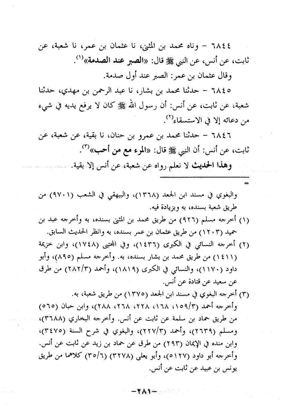 6844- وحَدَّثناه محمد بن المثنى، حَدَّثنا عُثمَان بن عُمَر، حَدَّثنا شُعْبَةُ، عَنْ ثابتٍ، عَن أَنَس، عَن النَّبِيّ صَلَّى اللَّهُ عَلَيه وَسَلَّم قَالَ: الصَّبْرُ عِنْدَ الصَّدْمَةِ.