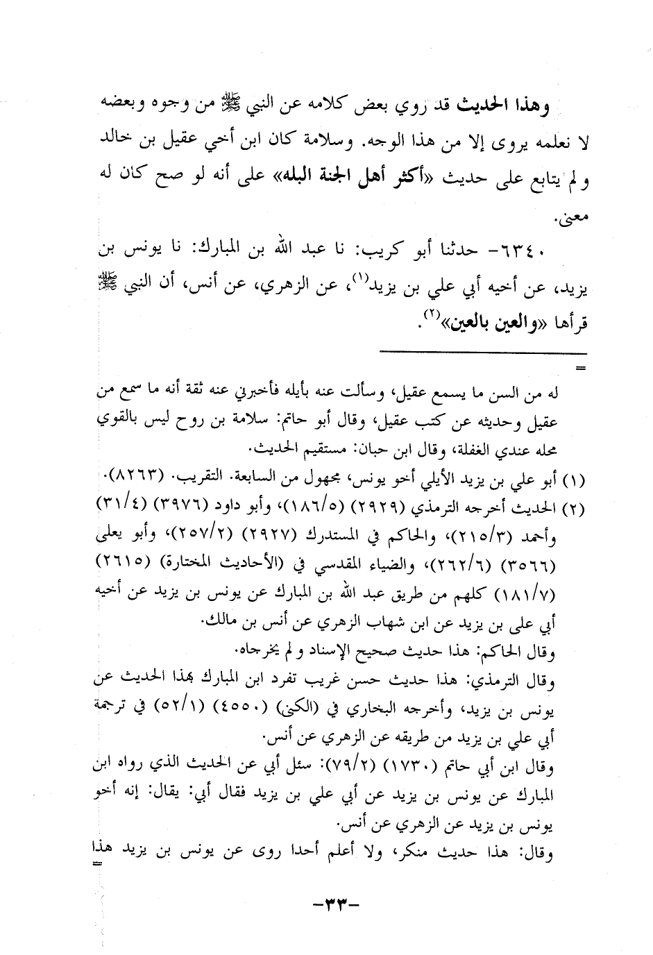 6340- حَدَّثنا ابو كُرَيب، حَدَّثنا عبد الله بن المبارك، حَدَّثنا يُونُس بْنُ يَزِيدَ , عَنْ أَخِيهِ أَبِي عَلِيِّ بْنُ يَزِيدَ، عَن الزُّهْرِيّ، عَن أَنَس؛ أَنَّ النَّبِيّ صَلَّى اللَّهُ عَلَيْهِ وَسَلَّمَ قَرَأَهَا وَالْعَيْن بالعين.