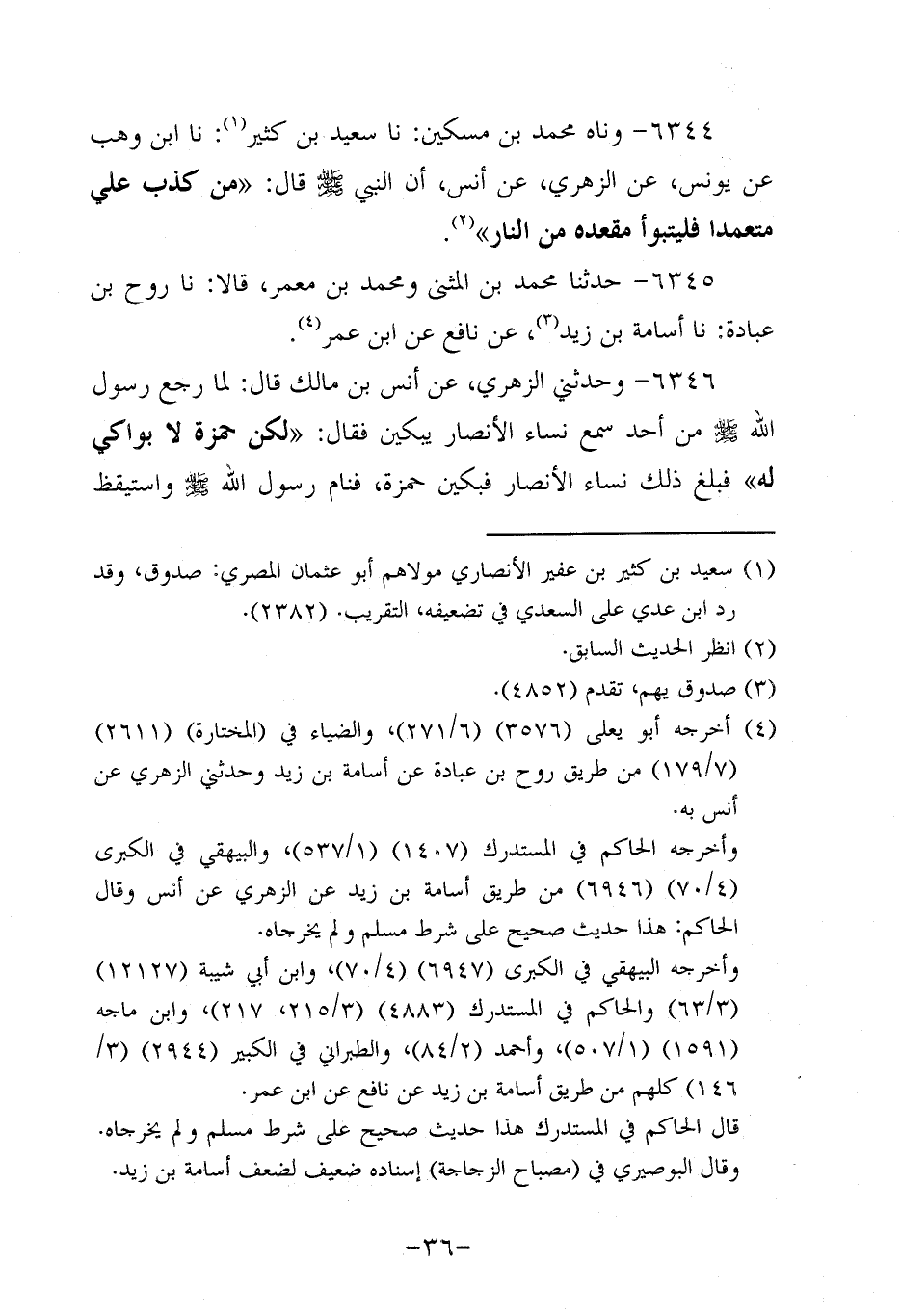 6344- وحَدَّثناه محمد بن مسكين، حَدَّثنا سعيد بن كثير، حَدَّثنا ابْنُ وَهْبٍ , عَنْ يُونُس، عَن الزُّهْرِيّ، عَن أَنَس؛ أَنَّ النَّبِيّ صَلَّى اللَّهُ عَلَيْهِ وَسَلَّمَ قَالَ: مَنْ كَذَبَ عَلَيَّ مُتَعَمِّدًا فَلْيَتَبَوَّأْ مَقْعَدَهُ مِنَ النَّارِ.