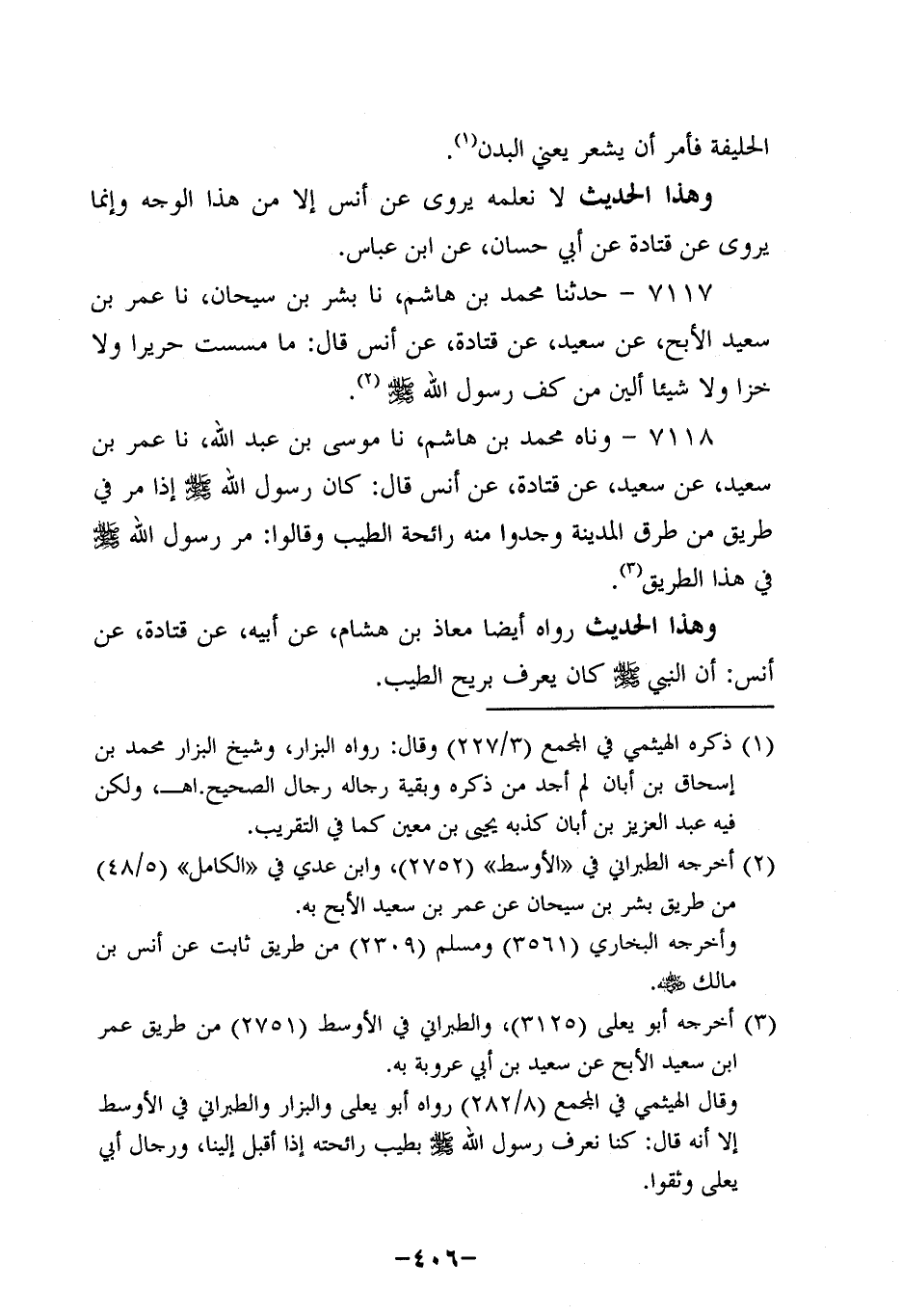 7118- وحَدَّثناه محمد بن هاشم، حَدَّثنا موسى بن عبد الله، حَدَّثنا عُمَر بْنُ سَعِيدٍ، عَنْ سَعِيدٍ، عَن قَتادة، عَن أَنَسٍ، قَالَ: كَانَ رَسُولُ اللَّهِ صَلَّى اللَّهُ عَلَيه وَسَلَّم إِذَا مَرَّ فِي طَرِيقٍ مِنْ طُرُقِ الْمَدِينَةِ وَجَدُوا مِنْهُ رَائِحَةَ الطِّيبِ وَقَالُوا: مَرَّ رَسُولُ اللَّهِ صَلَّى اللَّهُ عَلَيه وَسَلَّم فِي هَذَا الطَّرِيقِ.