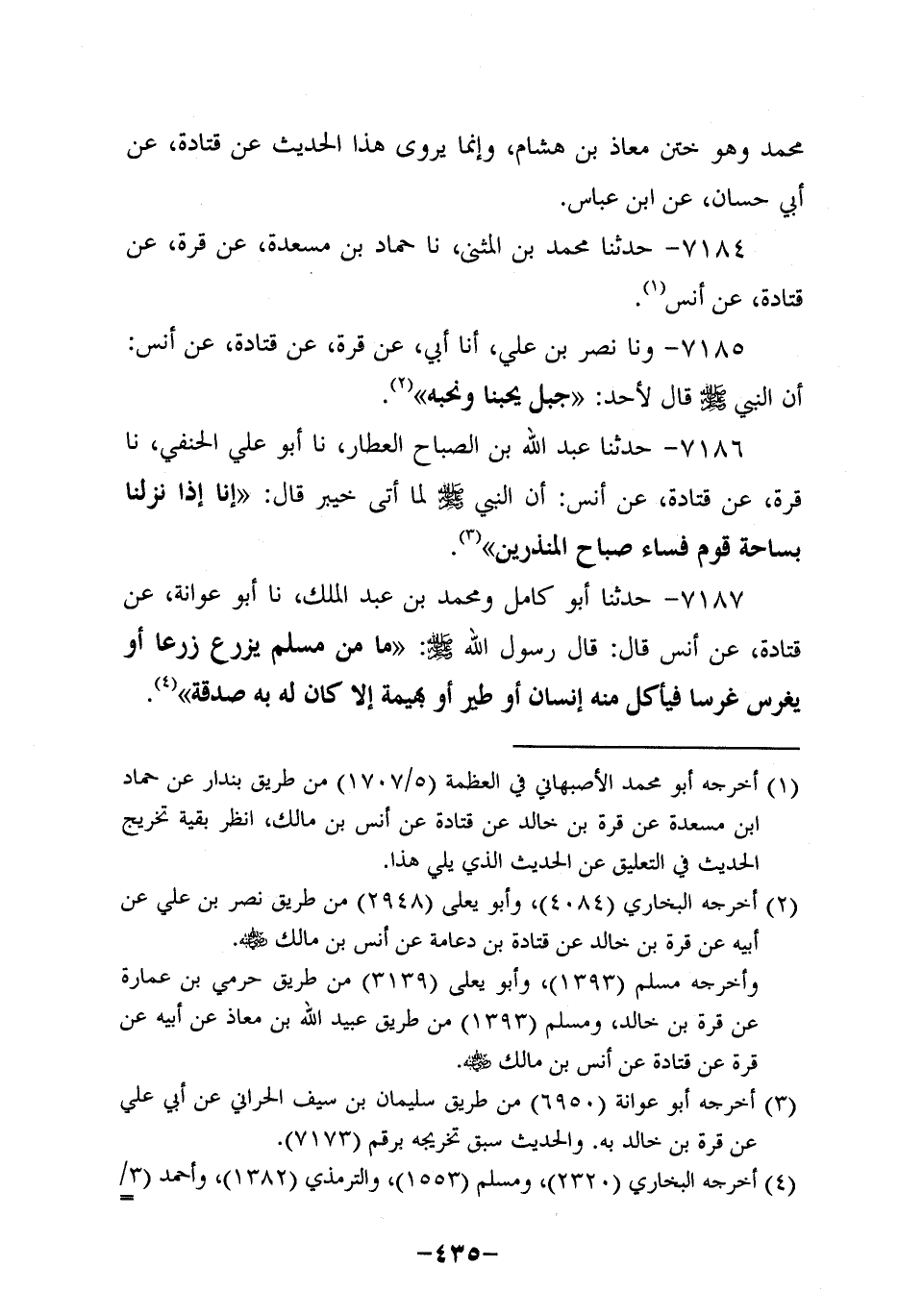7184- حَدَّثنا محمد بن المثنى، حَدَّثنا حَمَّادُ بْنُ مَسْعَدَةَ عَنْ قُرَّةَ، عَن قَتادة، عَن أَنَس.