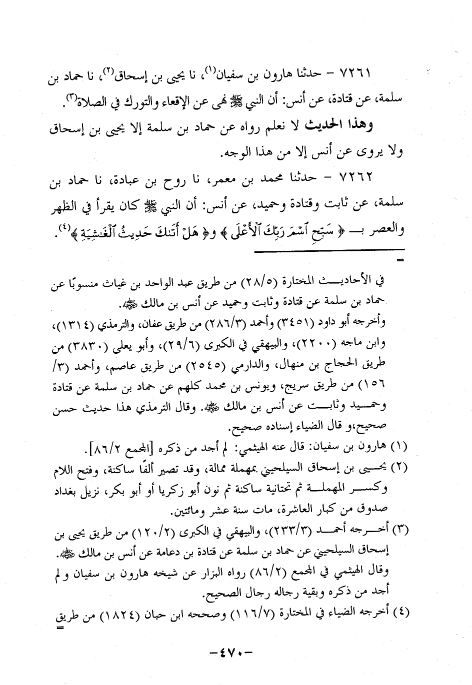 7261- حَدَّثنا هارون بن سُفيان، حَدَّثنا يَحْيَى بن إسحاق، حَدَّثنا حَمَّادُ بْنُ سَلَمَةَ، عَن قَتادة، عَن أَنَس؛ أَن النَّبِيّ صَلَّى اللَّهُ عَلَيه وَسَلَّم نَهَى عَنِ الإِقْعَاءِ وَالتَّوَرُّكِ فِي الصَّلاةِ.