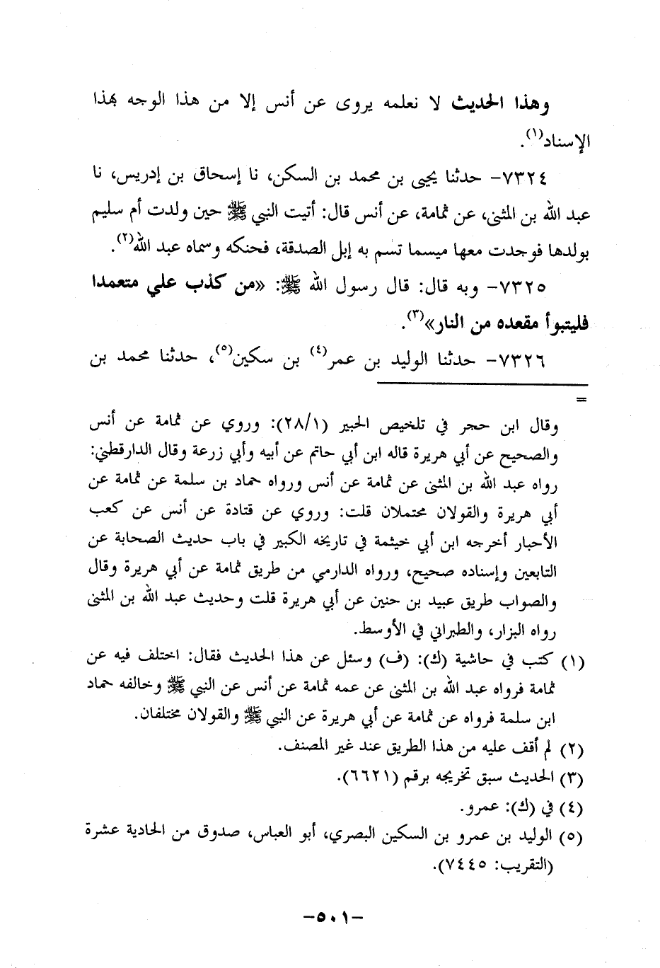7325- وَبِهِ قَالَ: قَالَ رَسُول اللهِ صَلَّى اللَّهُ عَلَيه وَسَلَّم: مَنْ كَذَبَ عَلَيَّ مُتَعَمِّدًا فَلْيَتَبَوَّأْ مَقْعَدَهُ مِنَ النَّارِ.