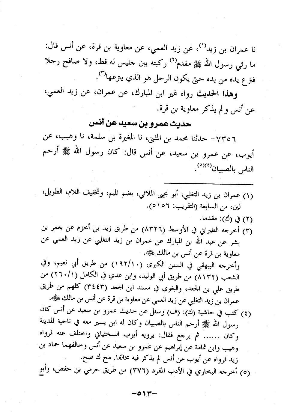 7356- حَدَّثنا مُحَمَّدُ بْنَ الْمُثَنَّى، حَدَّثنا المغيرة بن سلمة، حَدَّثنا وُهَيب، عَن أَيُّوبَ عَنْ عَمْرو بْنِ سَعِيد، عَن أَنَسٍ، قَالَ: كَانَ رَسُولُ اللَّهِ صَلَّى الله عَلَيه وَسَلَّم أرحم الناس بالصبيان.