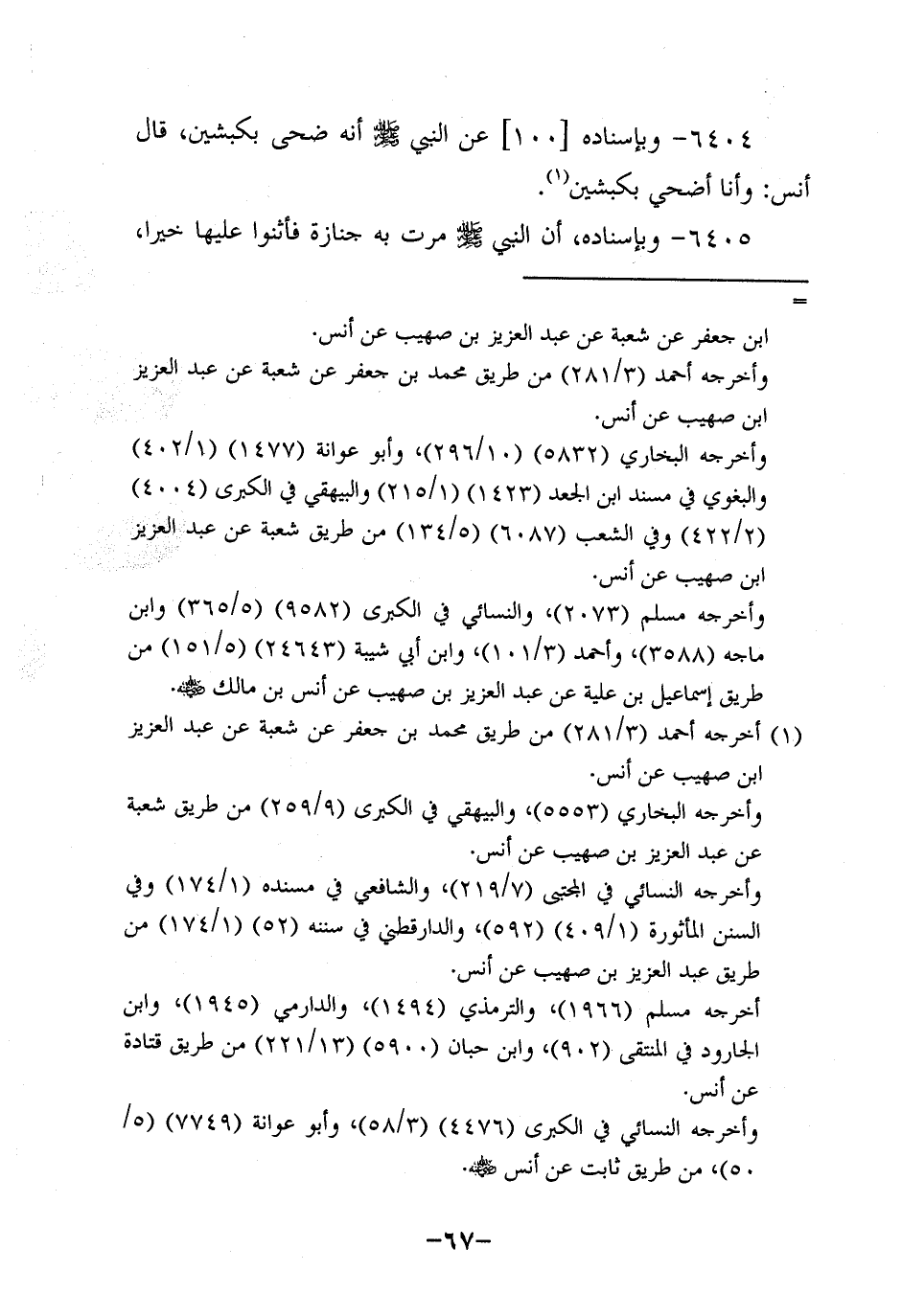 6404- وَبِإِسْنَادِهِ، عَن النَّبِيّ صَلَّى اللَّهُ عَلَيْهِ وَسَلَّمَ أَنَّهُ ضَحَّى بِكَبْشَيْنِ.