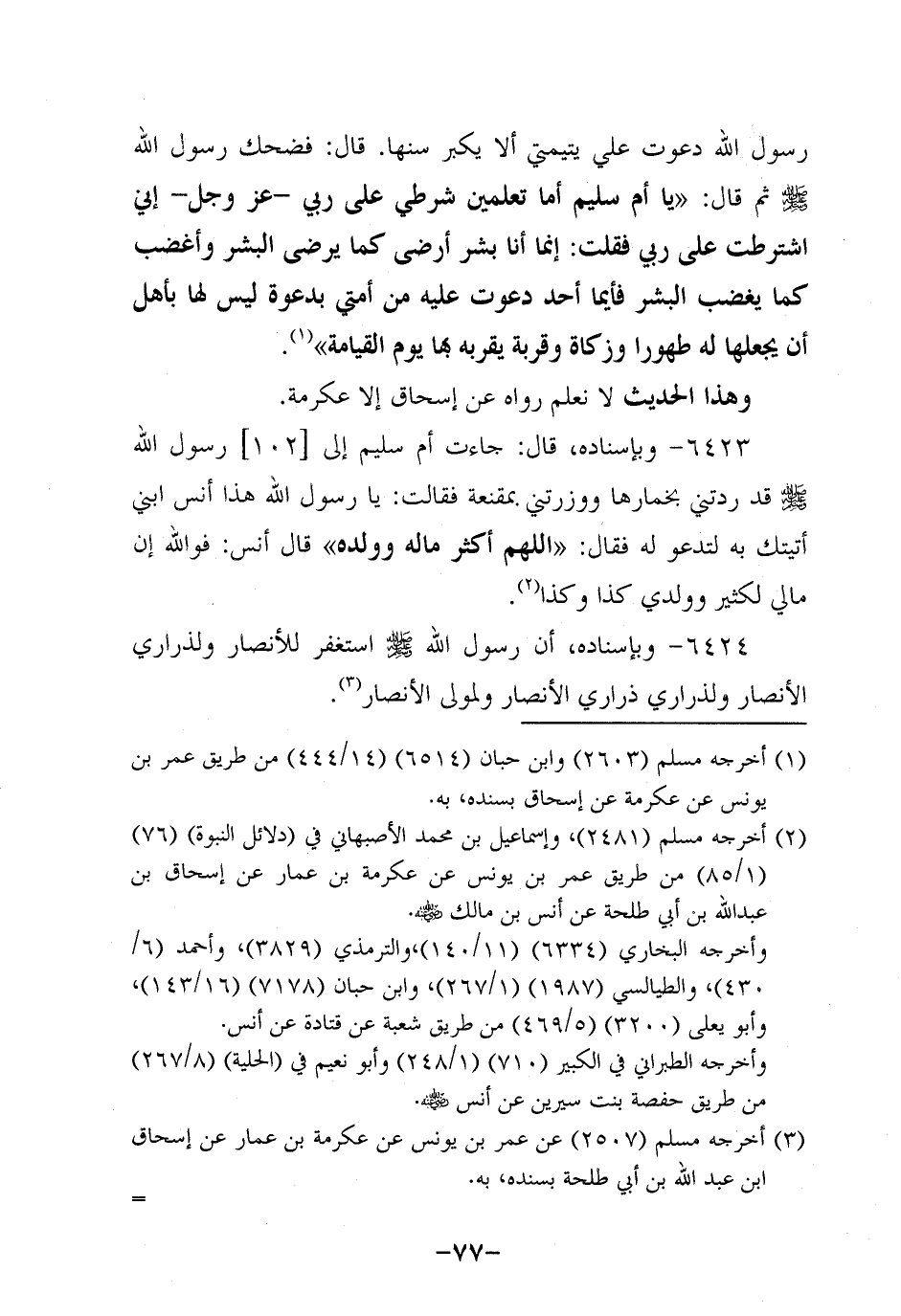 6423- وَبِإِسْنَادِهِ؛ قَالَ: جَاءَتْ أُمُّ سُلَيْمٍ إِلَى رَسُولِ اللَّهِ صَلَّى اللَّهُ عَلَيْهِ وَسَلَّمَ قَدْ رَدَّتْنِي بِخِمَارِهَا وَوَزَرَتْنِي بِمِقْنَعَةٍ فَقَالَتْ: يَا رَسولَ اللهِ هذا أنس ابني أتيتك به لتدعوا لَهُ فَقَالَ: اللَّهُمَّ أَكْثِرْ مَالَهُ وَوَلَدَهُ قَالَ أَنَسٌ: فَوَاللَّهِ إِنَّ مَالِي لَكَثِيرٌ وَوَلَدِي كَذَا وكذا.