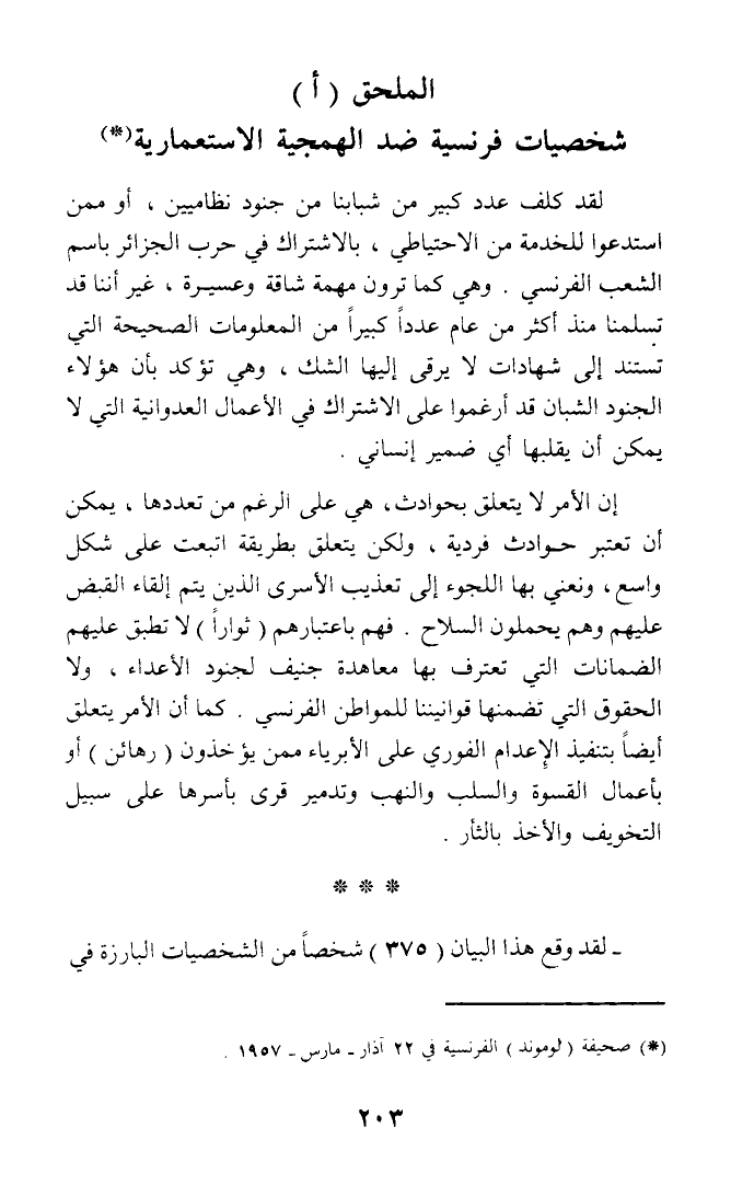 (*) صحيفة (لوموند) الفرنسية في 22 آذار - مارس - 1957.