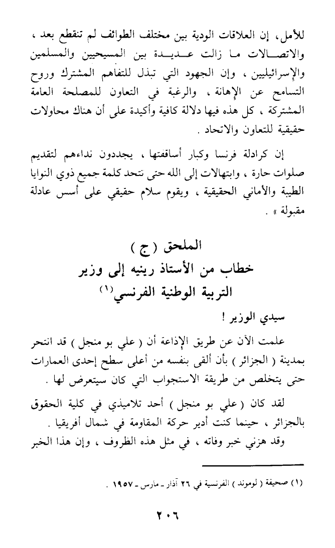 خطاب من الأستاذ رينيه إلى وزير التربية الوطنية الفرنسي (¬1)