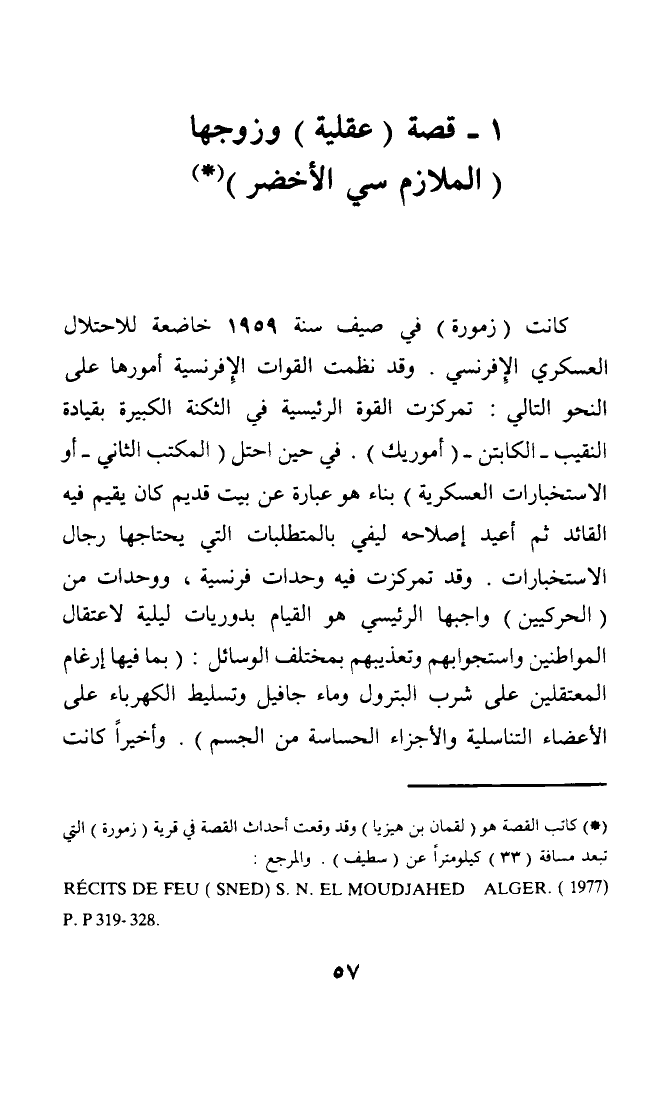 RECITS DE FEU (SNED) S. N. EL MOUDJAHED ALGER. (1977) P. P 319 - 328.