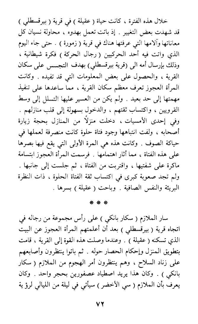 سار الملازم (سكار بانكي) على رأس مجموعة من رجاله في اتجاه قرية (بيرقسطلي) بعد أن أعلمتهم المرأة العجوز عن البيت الذي تسكنه (عقيلة). وعندما وصلت هذه القوة إلى القرية، قامت بتطويق المنزل وإحكام الحصار حوله. ثم باتوا ينتظرون وأصابعهم على زناد السلاح، وهم ينتظرون أمر الهجوم من الملازم (سكار بانكي). وكان هذا يريد اصطياد عصفورين بحجر واحد. وكان يعرف بأن الملازم (سي الأخضر) سيأتي في ليلة من الليالي لرؤية