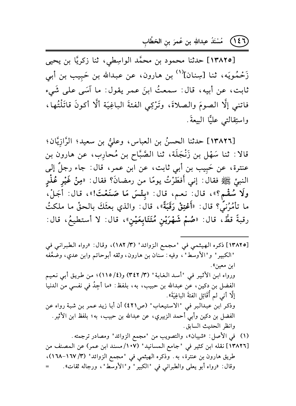 [13826] نقله ابن كثير في "جامع المسانيد" (107/مسند ابن عمر) عن المصنف من طريق هارون بن عنترة، به. وذكره الهيثمي في "مجمع الزوائد" (3/167-168) ، وقال: «رواه أبو يعلى والطبراني في "الكبير" و"الأوسط"، ورجاله ثقات» . -[147]-