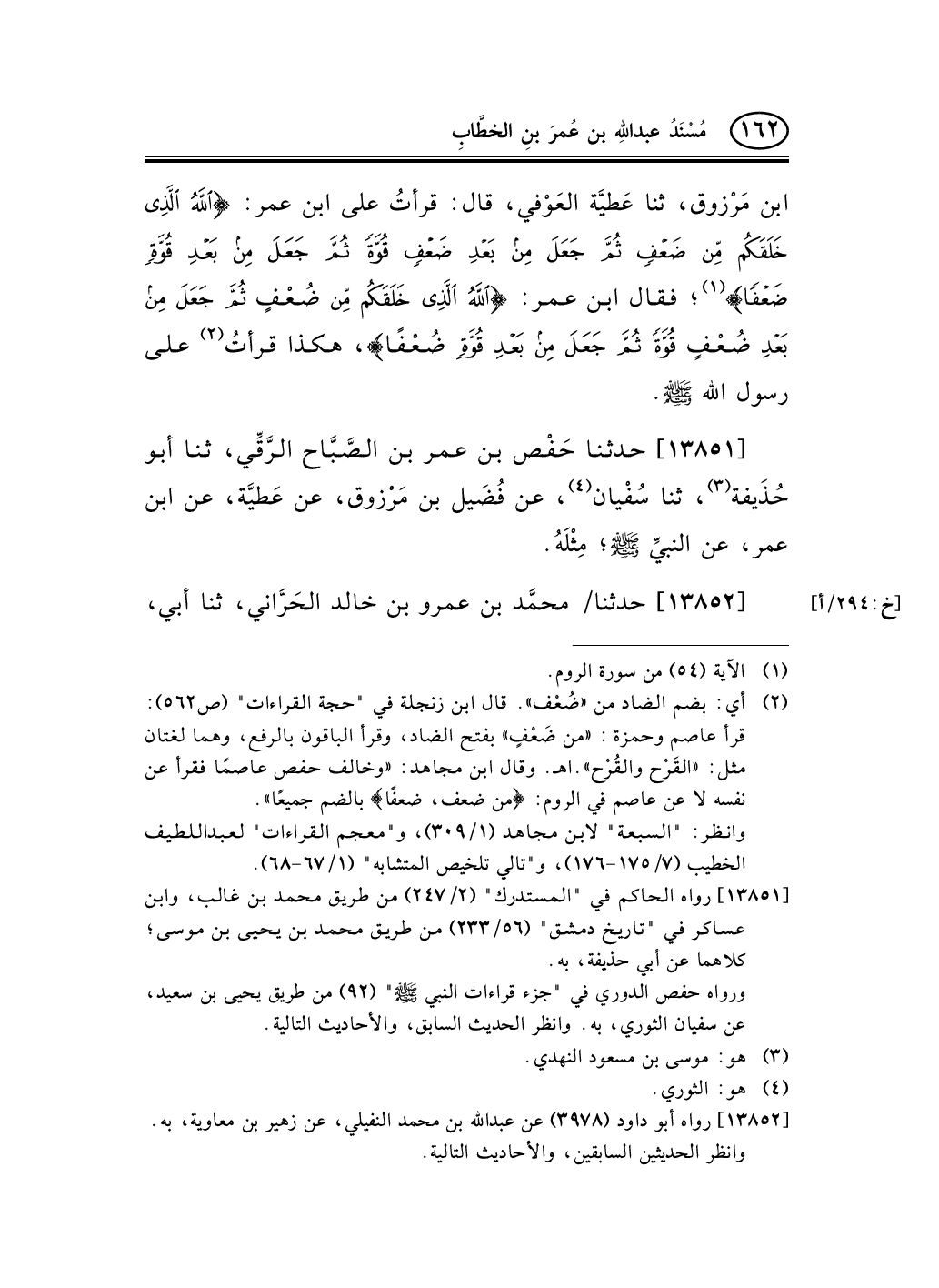 13851 - حدثنا حَفْص بن عمر بن الصَّبَّاح الرَّقِّي، ثنا أبو حُذَيفة (¬1) ، ثنا سُفْيان (¬2) ، عن فُضَيل بن مَرْزوق، عن عَطيَّة، عن ابن عمر، عن النبيِّ صلى الله عليه وسلم؛ مِثْلَهُ.