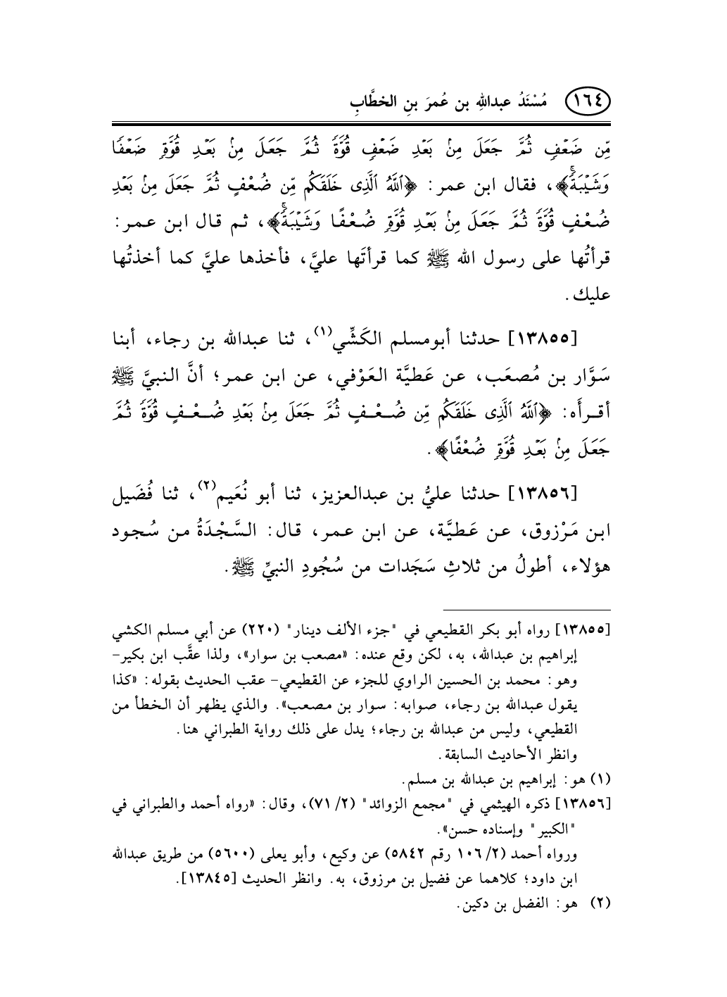 13856 - حدثنا عليُّ بن عبد العزيز، ثنا أبو نُعَيم (¬1) ، ثنا فُضَيل ابن مَرْزوق، عن عَطيَّة، عن ابن عمر، قال: السَّجْدَةُ من سُجود هؤلاء، أطولُ من ثلاثِ سَجَدات من سُجُودِ النبيِّ صلى الله عليه وسلم.